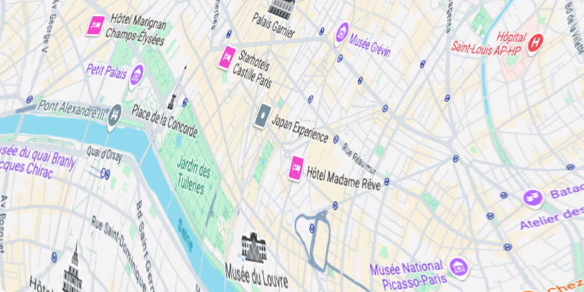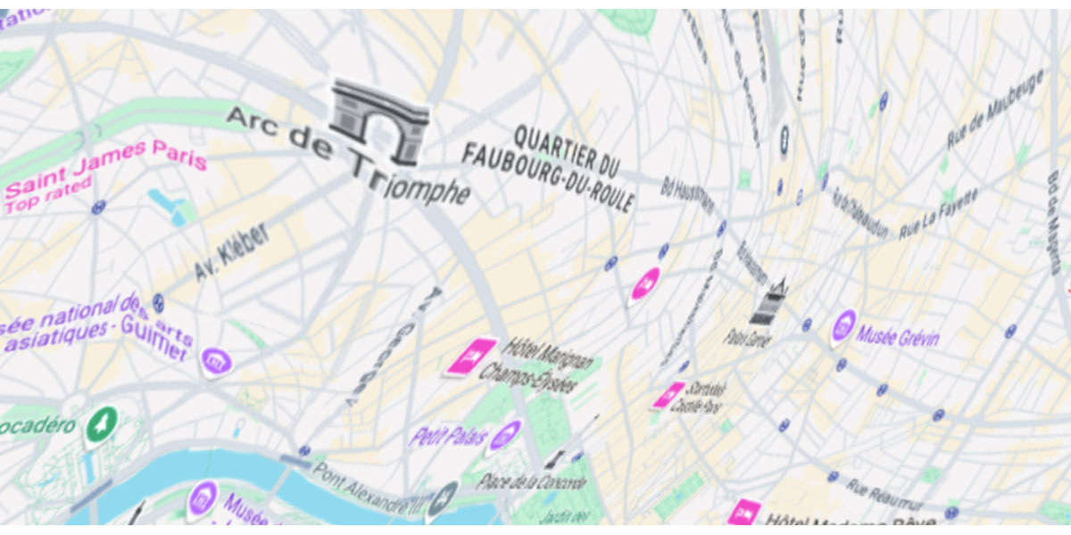 The side road fed into one of the Champs-Élysées, but the traffic wasn’t too bad. However, the symbol on the map was moving, so we had to keep up. Realising that his garbled directions in English weren’t helping, the talent took a stop signal as an invitation to hand his phone over the driver’s shoulder. The driver fumbled it into his dashboard mount, casually dismissing the horn from the car behind as the light turned green.
